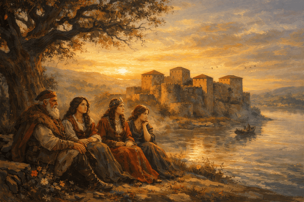 Представете си една плодородна земя, където хълмовете се къпят в златото на залеза, а Дунавът, този велик страж, тече неуморно към морето. Тук, в сърцето на онова, което днес наричаме България, живееше един заможен болярин. Той бе мъж на честта и богатството, натрупано от земи, стада и търговия по реката. Имаше три дъщери: Вида, най-голямата, с очи, които виждаха отвъд хоризонта; Кула, средната, с дух, жаден за величие; и Гъмза, най-малката, с сърце, пълно с мечти за любов.